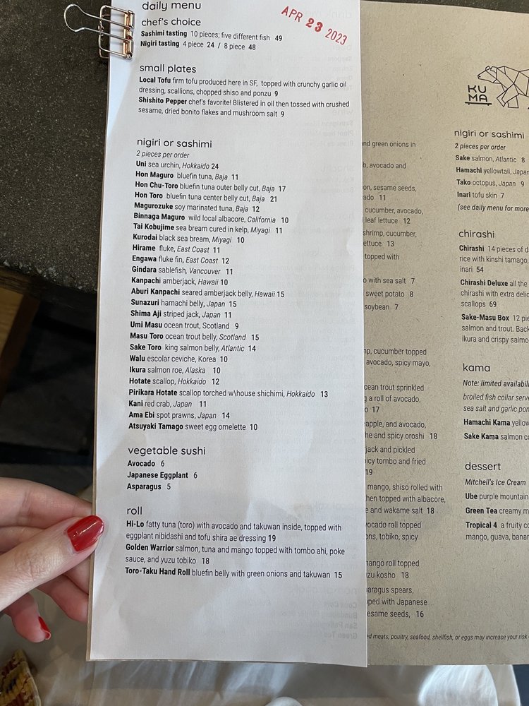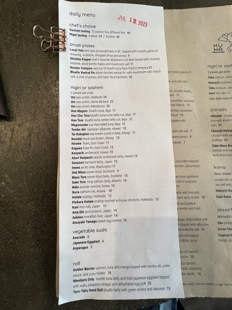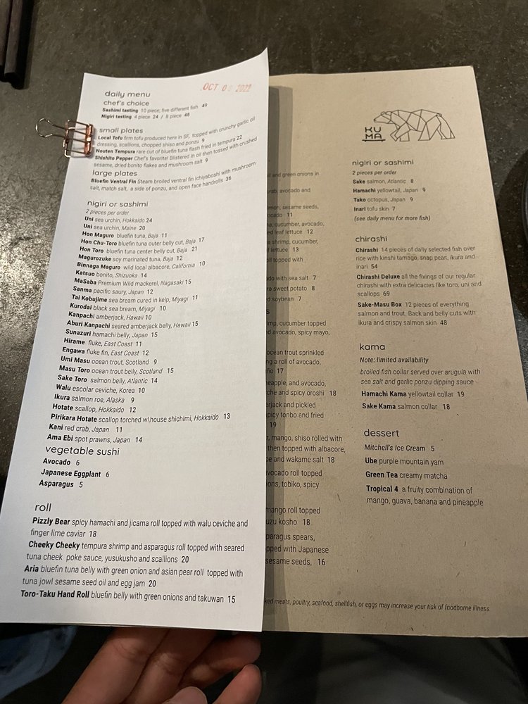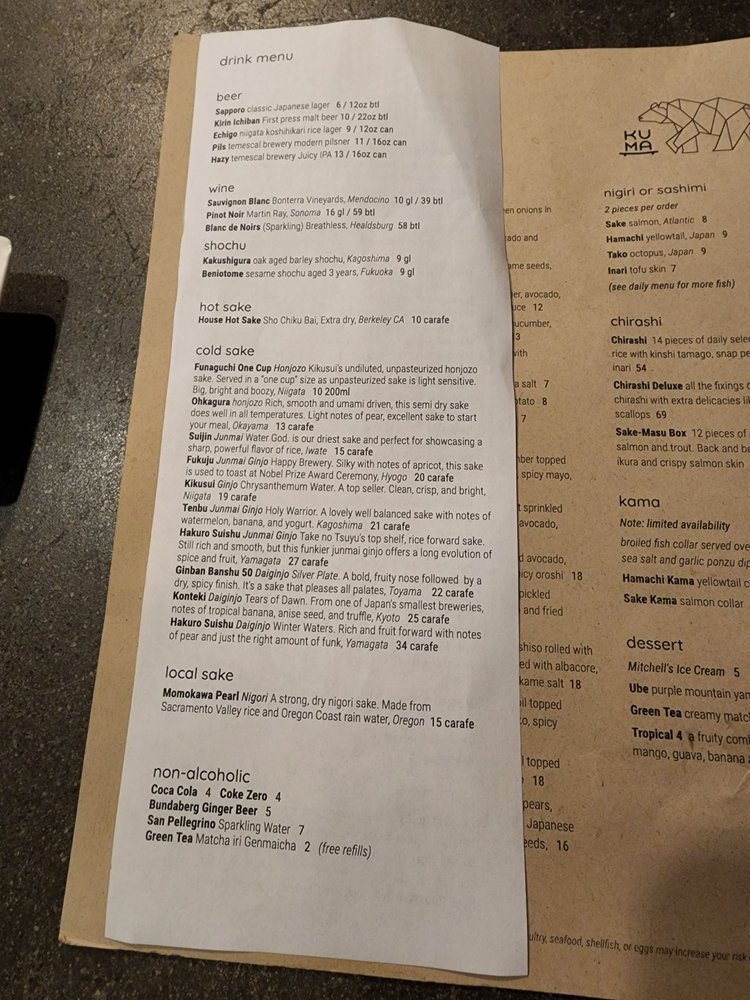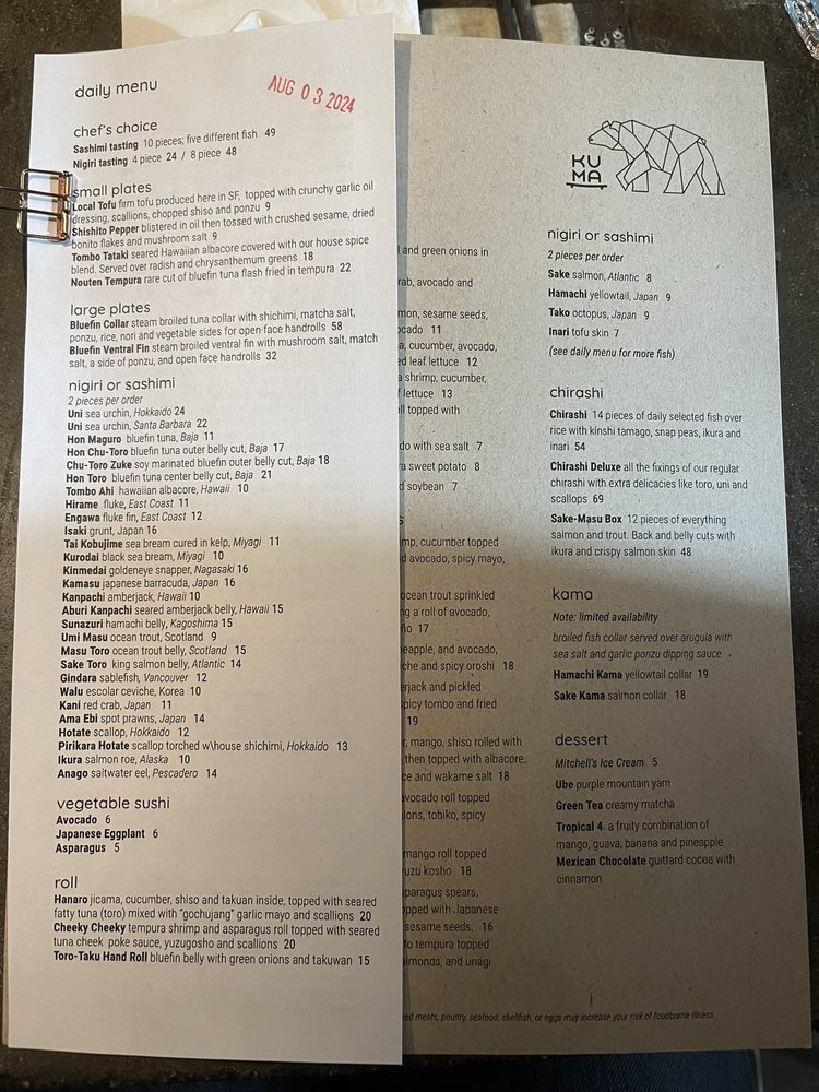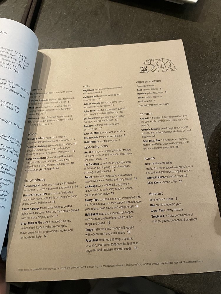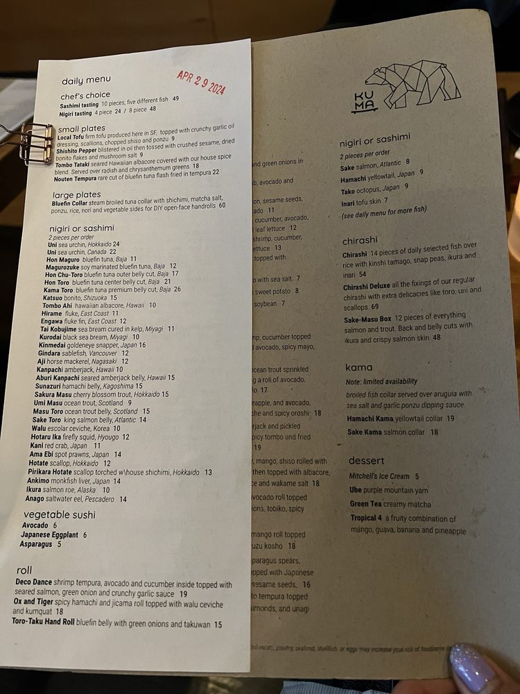Kuma Sushi & Sake is a trendy and intimate Japanese sushi bar in San Francisco, offering a variety of vegan and vegetarian options. The menu includes classic starters like edamame and miso soup, as well as unique dishes like the Tombo Tataki and Hamachi Ponzu small plates. The Seaweed Salad and Sakekawa Arugula are must-tries for their fresh and flavorful ingredients. With options for outdoor seating, happy hour specials, and even drive-thru service, Kuma Sushi & Sake caters to a wide range of diners. The restaurant's attention to detail, from their gender-neutral restrooms to their acceptance of cryptocurrency, shows a commitment to inclusivity and innovation. It's a great spot for a casual lunch with friends or a cozy dinner date, where you can enjoy delicious food in a welcoming atmosphere.